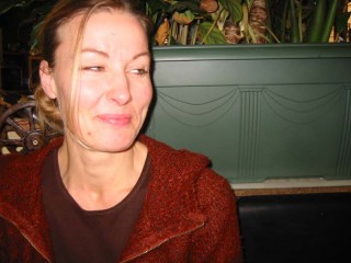 J'ai donné rendez-vous à Kristina Jansson, une artiste et voisine à la Cité des arts, pour voir ensemble une exposition de Jake et de Hervé Gio, à Paris Projekt Room. Kristina ne connait pas ce lieu et moi je veux revoir l'exposition. Mais PPR n'ouvre ses portes qu'à 16h et il est 14h. Nous discutons deux heures. Je fais un portrait de Kristina qui pour la première fois accepte.