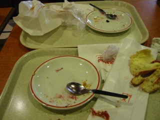 Alors là un gros trou de vingt minutes. Visiblement j'avais faim et je n'ai pas pris de photos. J'avais aussi une discussion de boulot sur le programme qui plantait tout à l'heure. Mais pas pour chercher la cause du bug, non une discussion plus générale sur des problèmes d'accés concurent en écriture au fichier mot de passe du système. Donc là c'est le passe plat pour les plateaux vides.