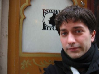 I decide to take a self portrait in front of the door I often pass where "Psycho Bitch" is written without any apparent context. I do not know what is on the other side of the door.