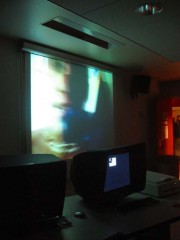 Je regarde la projection d'un travail de multimédia, un type qui se fait attaquer par son razoir. Ca crie beaucoup.